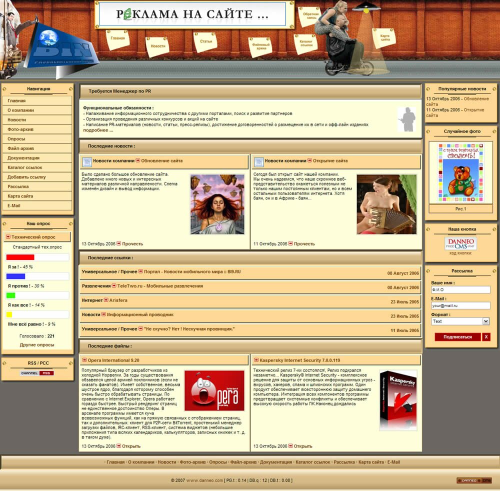 Шаблон предназначен в основном для развлекательного портала. Выполнен с применением Flash технологии . Отличительной особенностью скина является то,что логотип подгружается в flash ролик обычной картинкой. Поэтому проблем с заменой логотипа не возникнет.