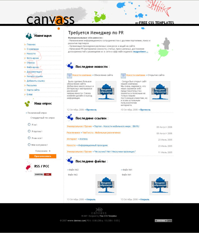 На основе одноименного шаблона от FreeCSSTemplates.org ]]> http://www.freecsstemplates.org/preview/canvass ]]> Шаблон 2-х колоночный. Стандартное оформление блоков не используется Описание и подробности установки читать в прилагаемом в архиве readme.