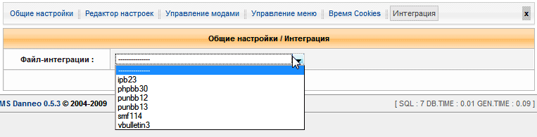 Включить или отключить интеграцию поддерживаемых Danneo CMS наиболее популярных форумов.