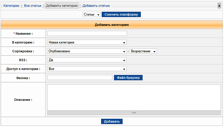 - Добавить категорию: