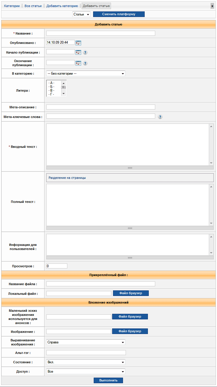 Для того чтобы добавить файл к статье, нажмите на кнопку "Файл браузер" (справа от поля).