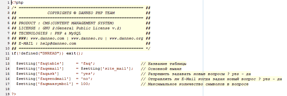 Настройки модуля "Вопросы-ответы" находятся в файле: