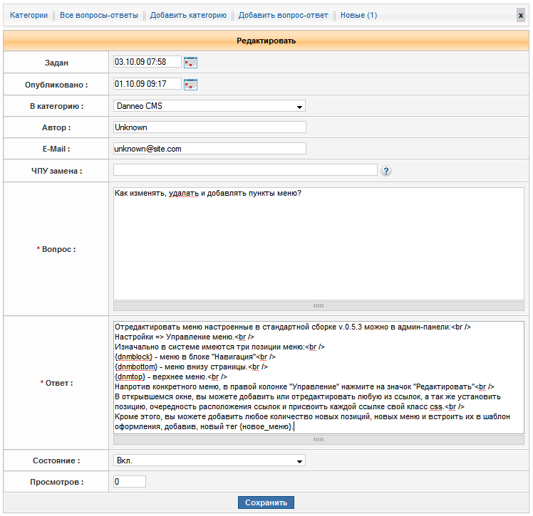На следующей странице "Редактировать", можно отредактировать вопрос или ответ.