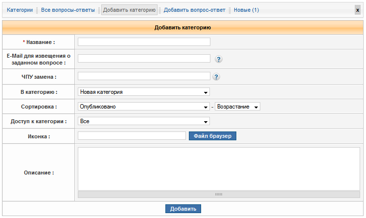 Сортировка: Сортировка вывода вопросов в данной категории.