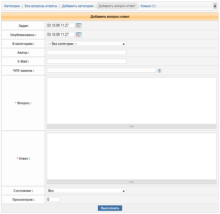 Откроется страница "Добавить вопрос-ответ".