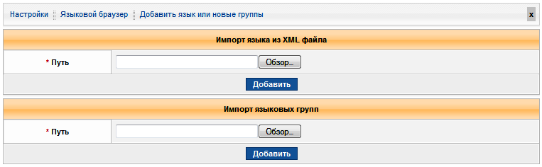 На данной странице можно добавить новый языковой пакет или новые языковые группы.