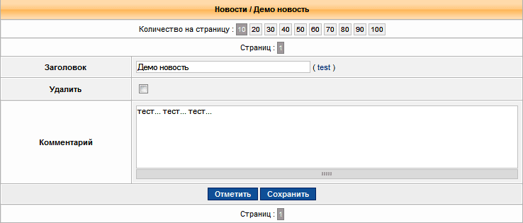 Если нажать на ссылку "Отметить" все новости расположенные на данной странице, будут отмечены галочками.