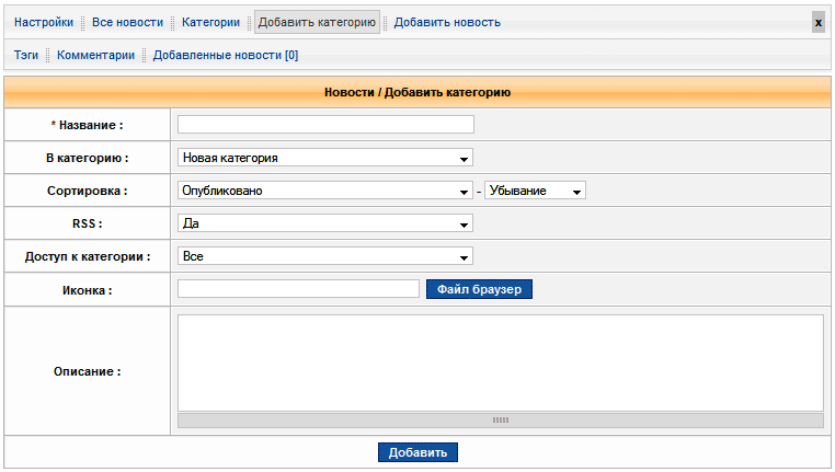 Для того чтобы добавить категорию, нажмите на кнопку "Добавить категорию".